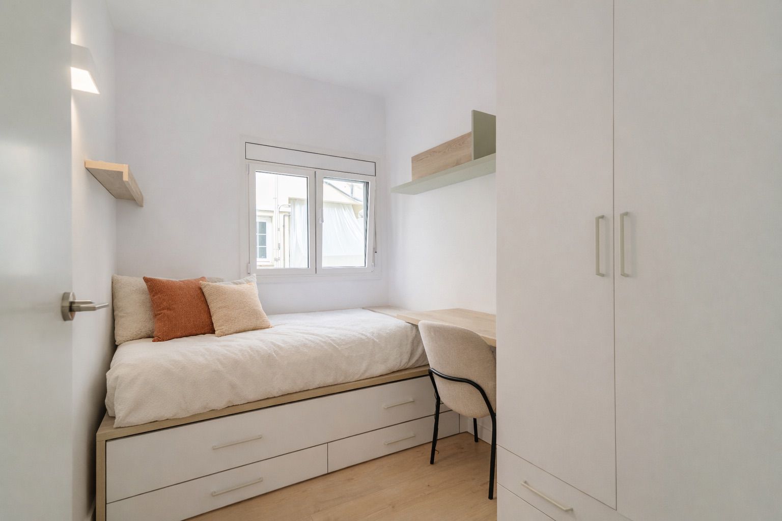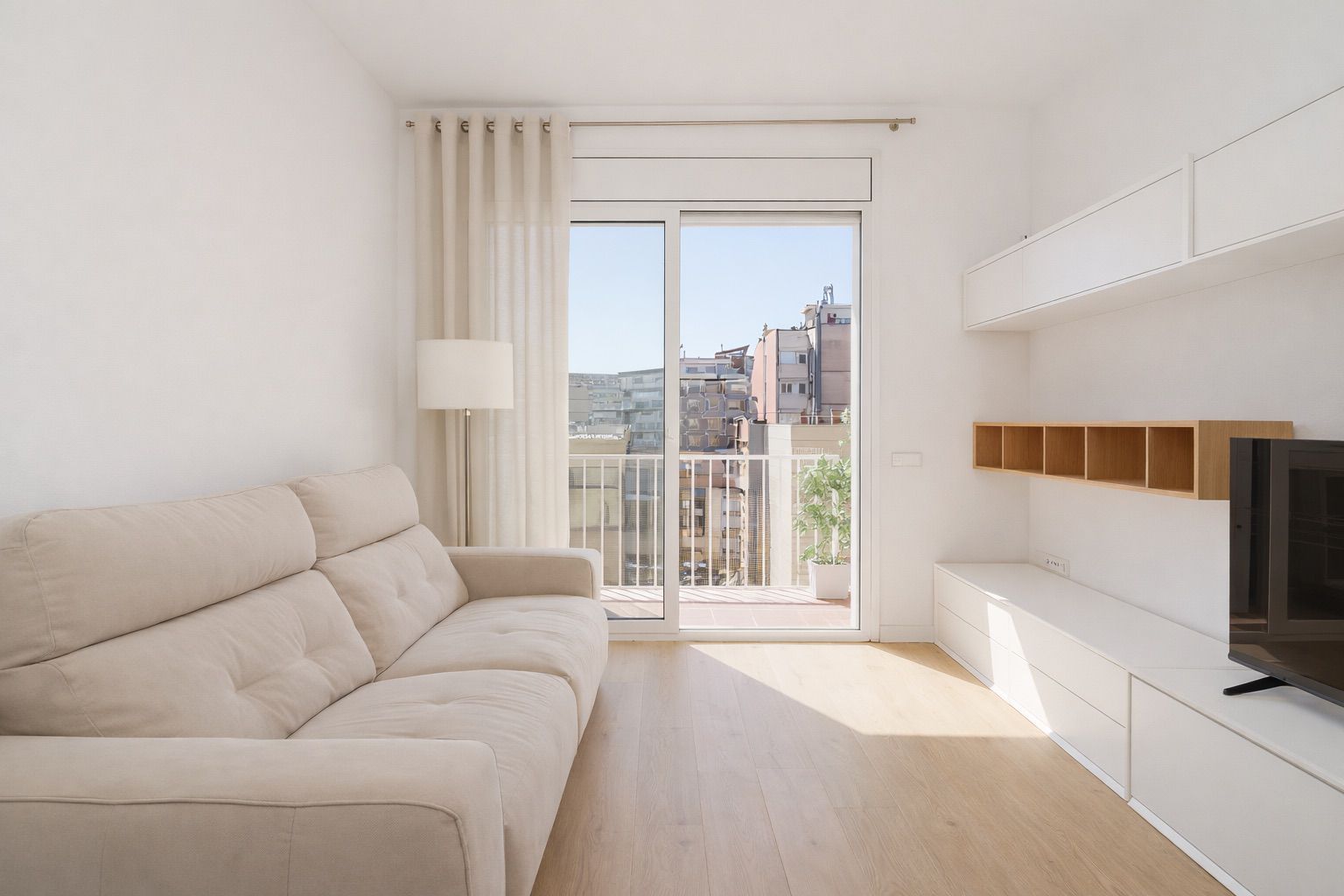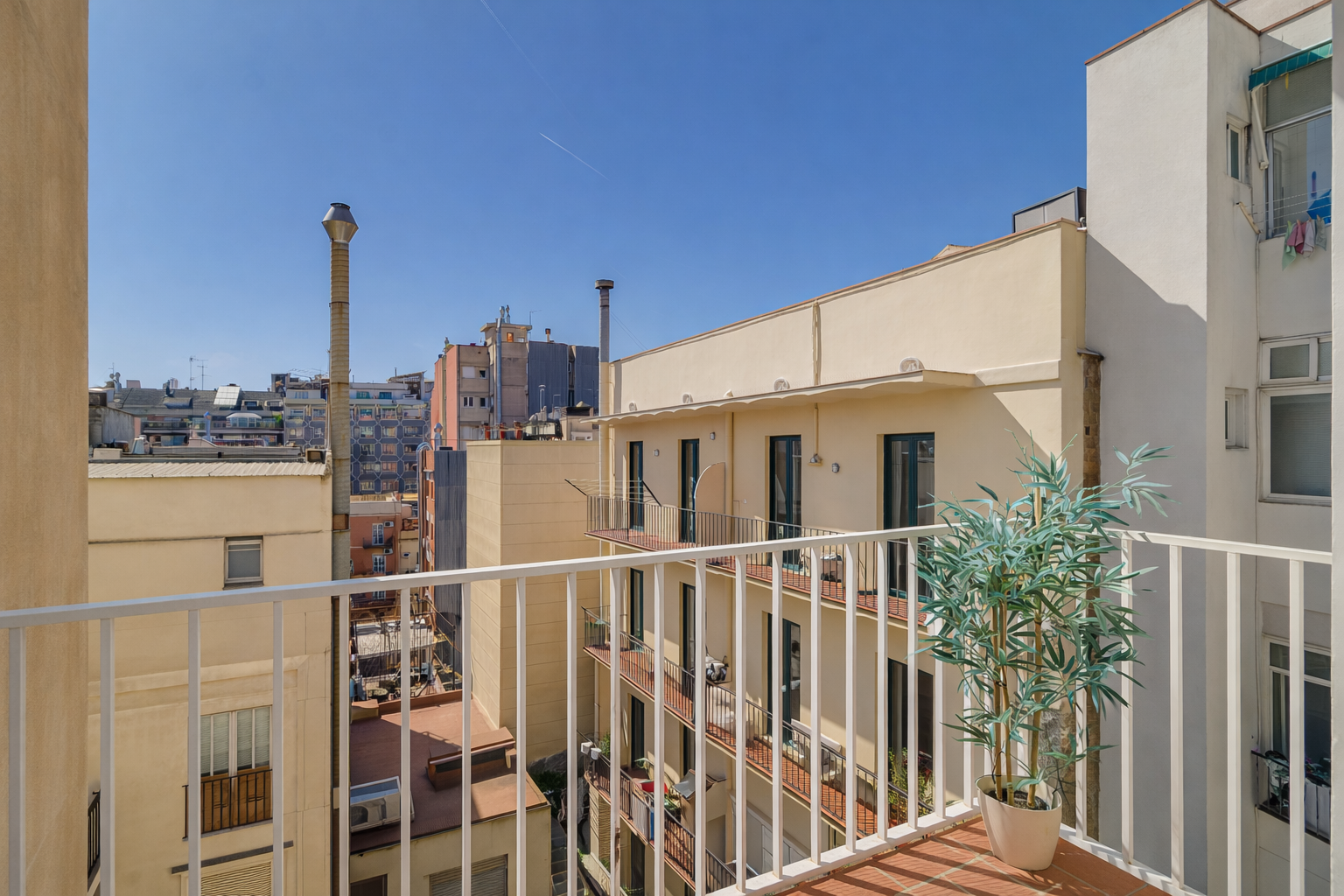 Desde el balcón, orientado a un tranquilo patio de manzana típico del Eixample, se disfruta de vistas despejadas y un entorno sorprendentemente silencioso, ideal para desconectar del ritmo urbano.